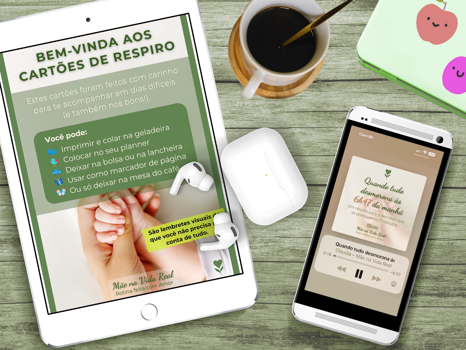 Um kit de respiro prático, afetivo e bonito — criado por uma mãe, pra mães reais.